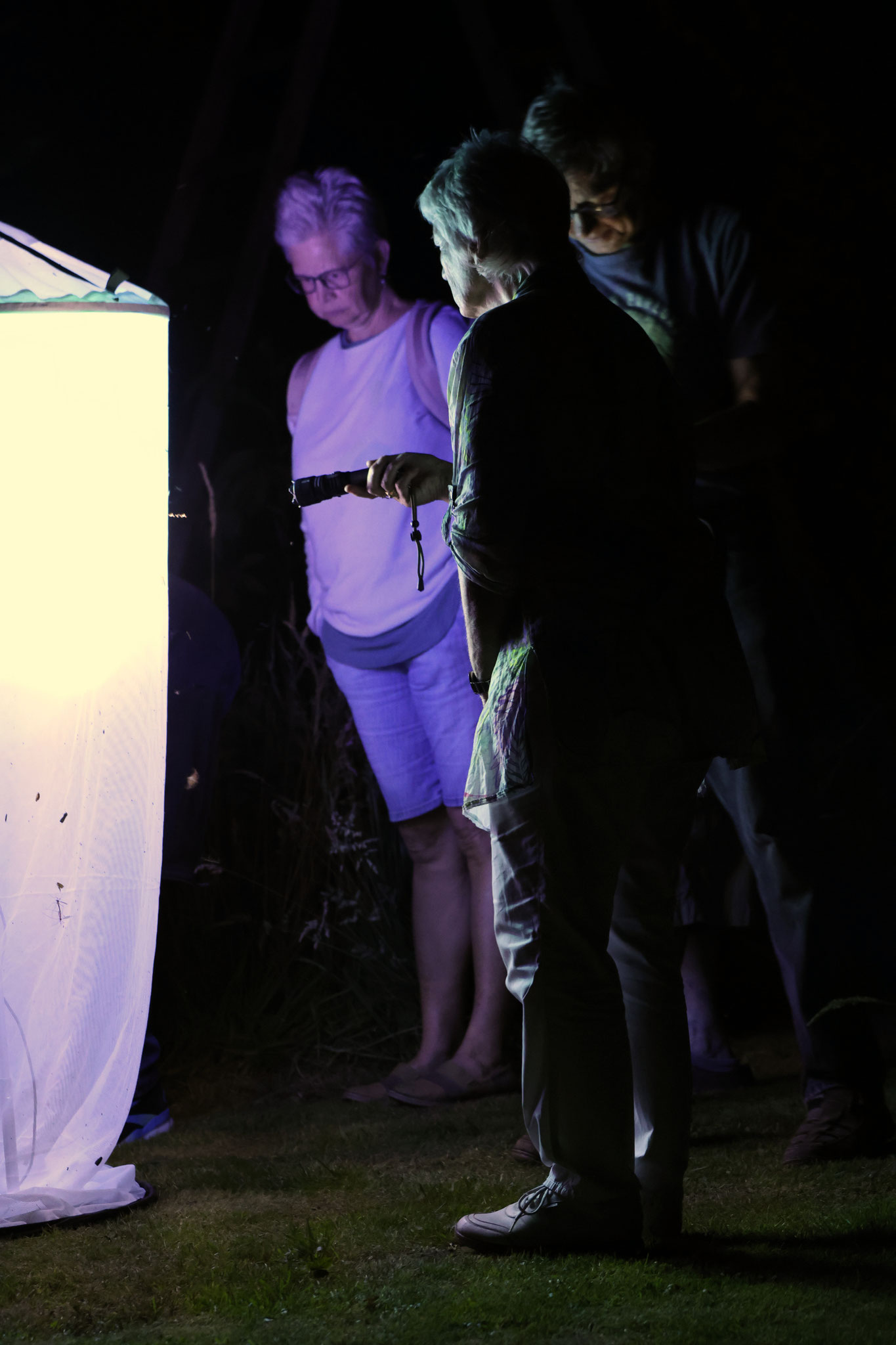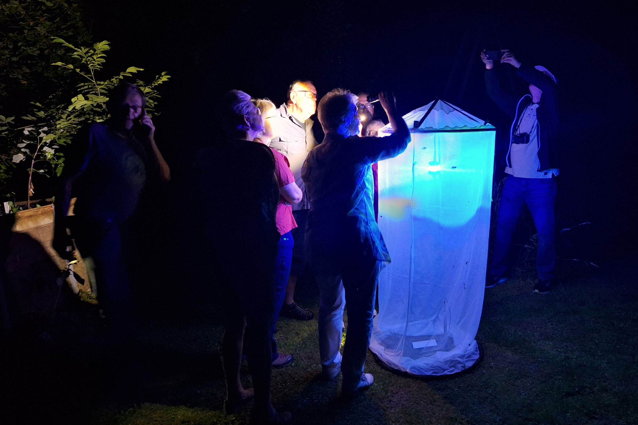 Hans Dudler und Ewald Thies hatten Leuchtzelte aufgebaut und nach Einbruch der Dunkelheit konnten wir viele besondere Nachtfalter und andere Insekten beobachten.